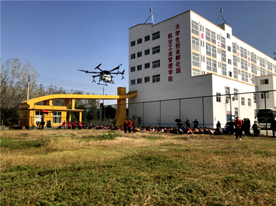 “快看,無(wú)人機(jī)飛起來(lái)了!”“哇,飛得這么高,還來(lái)去自如!”11月7日,伴隨一陣陣驚呼和贊嘆聲,幾架無(wú)人機(jī)緩緩升到空中,這是西華縣無(wú)人機(jī)產(chǎn)業(yè)園黨支部黨員飛手給小朋友們模擬農(nóng)田打藥的場(chǎng)景。
