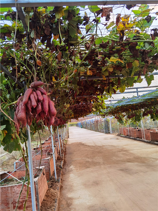 西華縣農(nóng)科所積極開展“空中結(jié)薯”試驗種植研究,并取得成功。“空中結(jié)薯”采取嫁接技術(shù),選用旋花科植物牽牛作砧木,脫毒薯苗作接穗嫁接而成,嫁接成活后栽到土壤里,搭建棚子,加強薯苗水肥管理,每株插一根小竹木桿,促進薯苗快速生長上棚,在棚上吊花盆,盆內(nèi)放蛭石,生長到掤上的薯秧壓到花盆里,加強水肥管理。90天結(jié)薯,進入10月份把花盆去掉。該技術(shù)打破傳統(tǒng)栽培方式,主要為公園、科技園區(qū)、農(nóng)業(yè)生態(tài)觀光園、家庭庭院內(nèi)培植,有很好的科研價值、觀賞價值和農(nóng)業(yè)推廣價值。周口日報·周道客戶端記者李鳳霞 攝