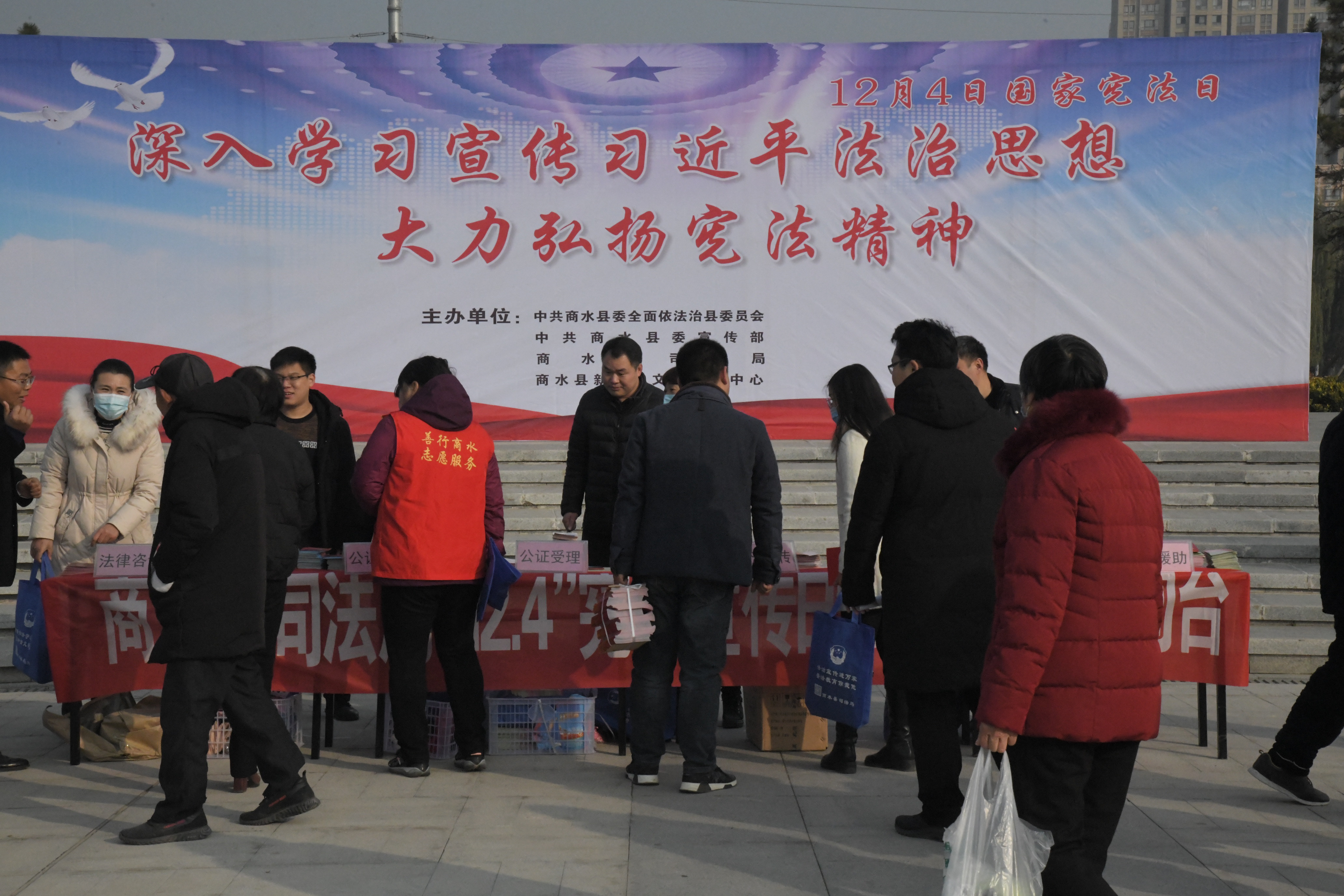 為深入學(xué)習(xí)宣傳習(xí)近平法治思想,弘揚(yáng)憲法精神,維護(hù)憲法權(quán)威,推動(dòng)憲法全面實(shí)施,在第七個(gè)國家憲法日來臨之際,商水縣在縣陽城公園開展“12.4國家憲法日”宣傳活動(dòng)。