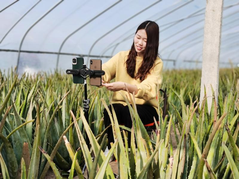 12月7日,川匯區(qū) 華耀城辦事處葛灣村孫立偉的蘆薈大棚里在進行直播賣貨。周口市川匯區(qū) 華耀城辦事處葛灣村發(fā)展種植大棚蘆薈,成為當(dāng)?shù)氐奶厣?jīng)濟產(chǎn)業(yè),并成立集體經(jīng)濟組織合作社,全村統(tǒng)一規(guī)劃,結(jié)合市場需求規(guī)律,由合作社與企業(yè)簽訂訂單或通過電商平臺進行網(wǎng)絡(luò)銷售。①15