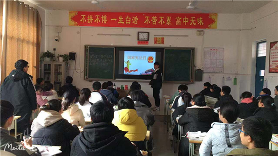 扶溝縣高中二(6)班學(xué)生楊毅說:“通過學(xué)校開展的學(xué)憲法活動(dòng),了解了很多和生活息息相關(guān)的法律知識,增強(qiáng)了法治觀念,我要做尊法、守法、護(hù)法的好少年?!?/p>