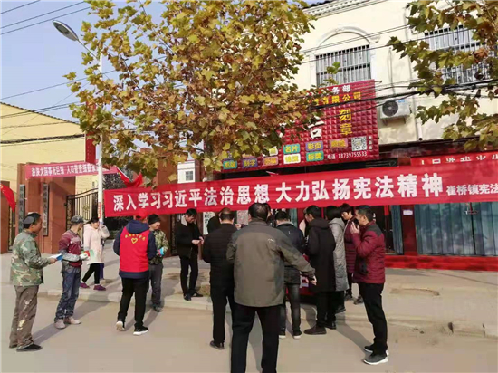 12月4日是第七個國家憲法宣傳日。為深入學(xué)習(xí)宣傳習(xí)近平法治思想,努力營造和諧穩(wěn)定的鄉(xiāng)村環(huán)境和法治氛圍,推動全鎮(zhèn)“深入學(xué)習(xí)宣傳習(xí)近平法治思想、大力弘揚憲法精神”。崔橋鎮(zhèn)組織司法所、派出所等采取多種形式,開展了憲法宣傳。