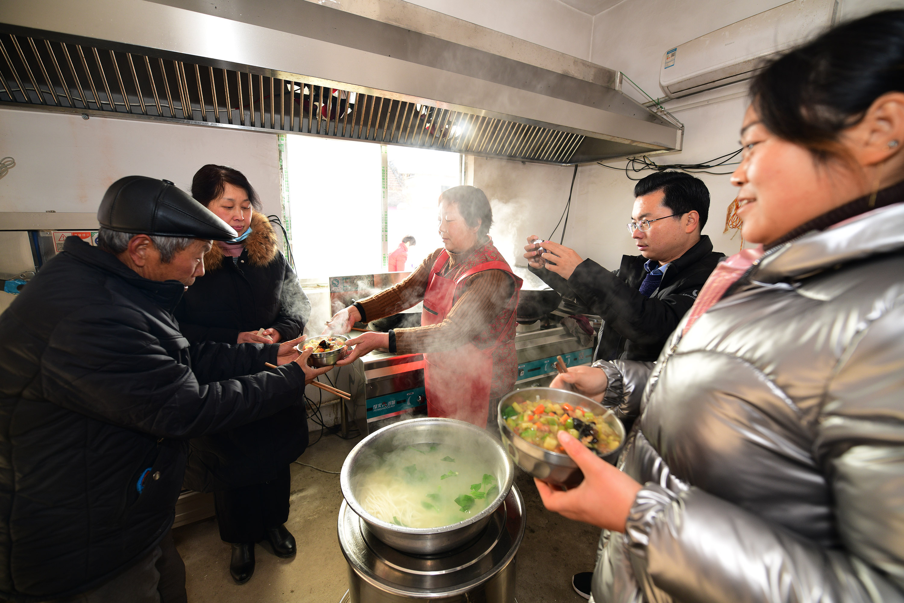 “開飯嘍!”隨著一聲喊,十幾位老人走進炊煙裊裊、菜飯飄香的小院,拿著碗和積分卡,排隊打飯。這是12月15日中午,記者在西華縣奉母鎮(zhèn)七里倉二村看到村食堂開飯的場景。老人每人一碗臊子面,吃得渾身熱乎乎的。這一勺飯,讓這里的老人長壽幸福,從此不再怕風(fēng)雨不再畏嚴(yán)寒。這一勺飯,是七里倉二村今年實施土地治理后的村集體公糧,也是實施土地承包制40年來村集體里的首份余糧。
