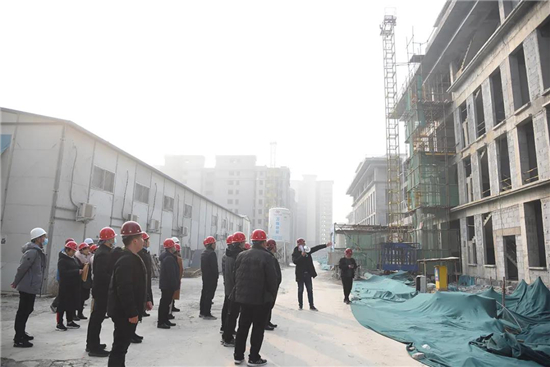 當(dāng)日上午,受院長(zhǎng)于健委托,院領(lǐng)導(dǎo)張廣海、葉達(dá)林、王文鋒、王成坤帶領(lǐng)醫(yī)政、護(hù)理、控感等相關(guān)職能科室負(fù)責(zé)人,一行20余人到建設(shè)工地現(xiàn)場(chǎng)察看。施工方技術(shù)人員詳細(xì)介紹了門診樓、病房樓等各樓層的功能定位、科室布局、水暖線路等,雙方就一些細(xì)節(jié)問(wèn)題進(jìn)行深入交流。