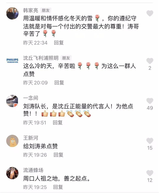 2021年元旦,記者聯(lián)系聯(lián)系上了視頻中的主人公——沈丘縣交警大隊城市中隊劉濤中隊長,雖然是元旦假日,他依然堅守在崗位上,他告訴記者,這是一名交警工作的日常,沒有想到自己和同事們的一個小舉動能獲得無數(shù)網(wǎng)友好評,這給了他們在以后工作中更大的動力,劉濤表示,風雪無阻,滾滾車流中,他將為全縣人民的安全出行繼續(xù)堅守崗位。