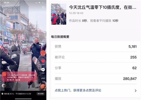 幾天來,一段關(guān)于沈丘交警的抖音徹底火了!一名學生家長把這段視頻上傳到了抖音,沒想到,短短幾天時間,該視頻播放量近三十萬……