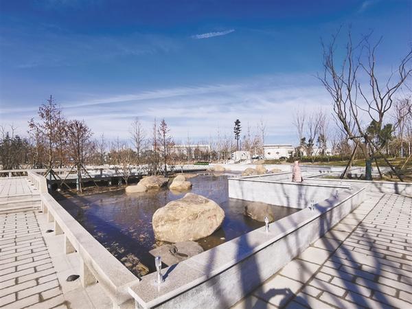 2020年12月31日,中心城區(qū)水系綜合治理書香文苑園區(qū)完工,向市民開放。書香文苑園區(qū)位于文昌大道與政通路交叉口西南角,是洼沖溝水系治理的一部分。園區(qū)內(nèi)突出周口毛筆之鄉(xiāng)文化元素、建設(shè)生態(tài)綠色林帶、布置觀景濱水平臺(tái)等內(nèi)容,建有兩處廣場、景觀旱噴、濱水平臺(tái)、文化地雕等設(shè)施,為市民增加一處活動(dòng)休閑的地方。記者 孫安平 攝
