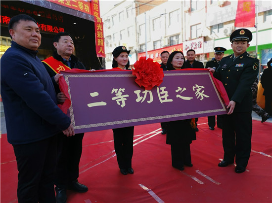 “這么冷的天沒想到軍地領導親自上門送喜報,還定制了功臣之家的光榮牌匾……”看到送喜報“隊伍”的到來,趙金豹激動地連說到。