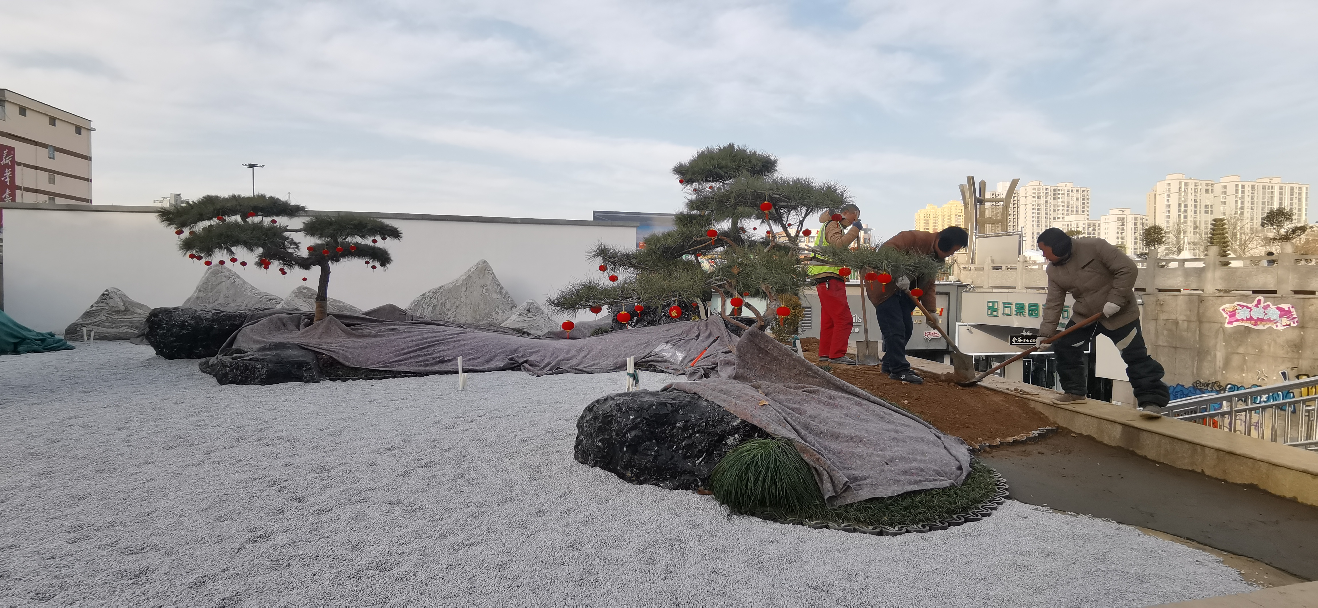 1月9日,工人在中心城區(qū)五一文化廣場(chǎng)綠化提升改造現(xiàn)場(chǎng)緊張工作。記者在廣場(chǎng)南側(cè)看到,東西兩端的圍擋己拆除,小而精的精品綠化工程顯現(xiàn)。兩處綠化景觀最后面是一個(gè)景墻,景墻再往前是一片錯(cuò)落有致的景石,給人一種峰巒疊嶂的感覺,再往前是由造型各異的迎客松、草坪、綠色植物等。②18