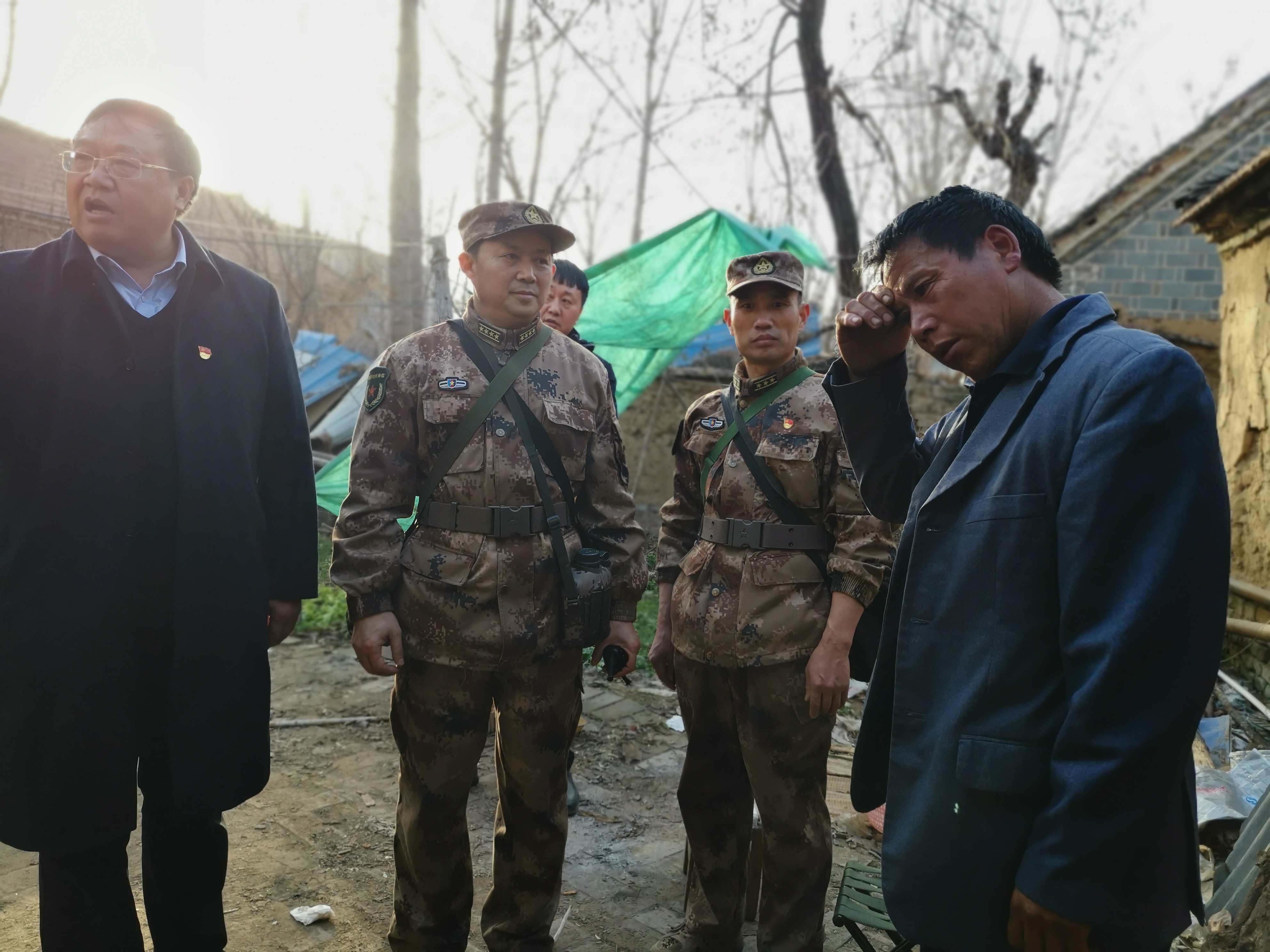 周口軍分區(qū)還將政治工作貫穿于野營拉練全過程,當(dāng)行至周口港區(qū)苑寨行政村時(shí),薛振喜、周口軍分區(qū)政治工作處主任李揚(yáng)以及川匯區(qū)人武部部長陳繼芳、政委高新傳等來到貧困戶苑立中家中慰問,為他們送去米面糧油等慰問品??粗喡姆课?,得知苑立中獨(dú)自一個(gè)人拉扯3個(gè)孩子的艱辛生活后,薛振喜囑咐當(dāng)?shù)卣臀溲b部門要想辦法幫扶這戶貧困家庭。 苑立中激動(dòng)地流下眼淚,握著薛振喜的手連聲感謝。