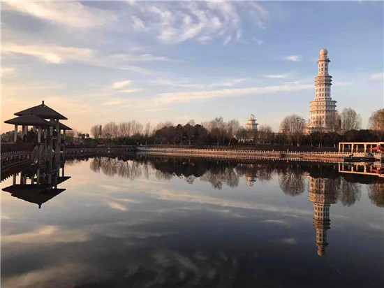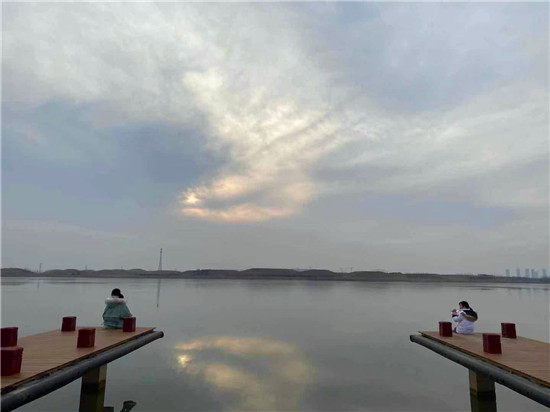 寬闊浩淼的水面、古香古色的船只、天空水中共徘徊的云影、充滿藝術(shù)感的建筑、富有趣味的彩色沿湖跑道……初展姿容的永寧湖(原伏羲湖)濕地公園,吸引著眾人的目光和腳步。