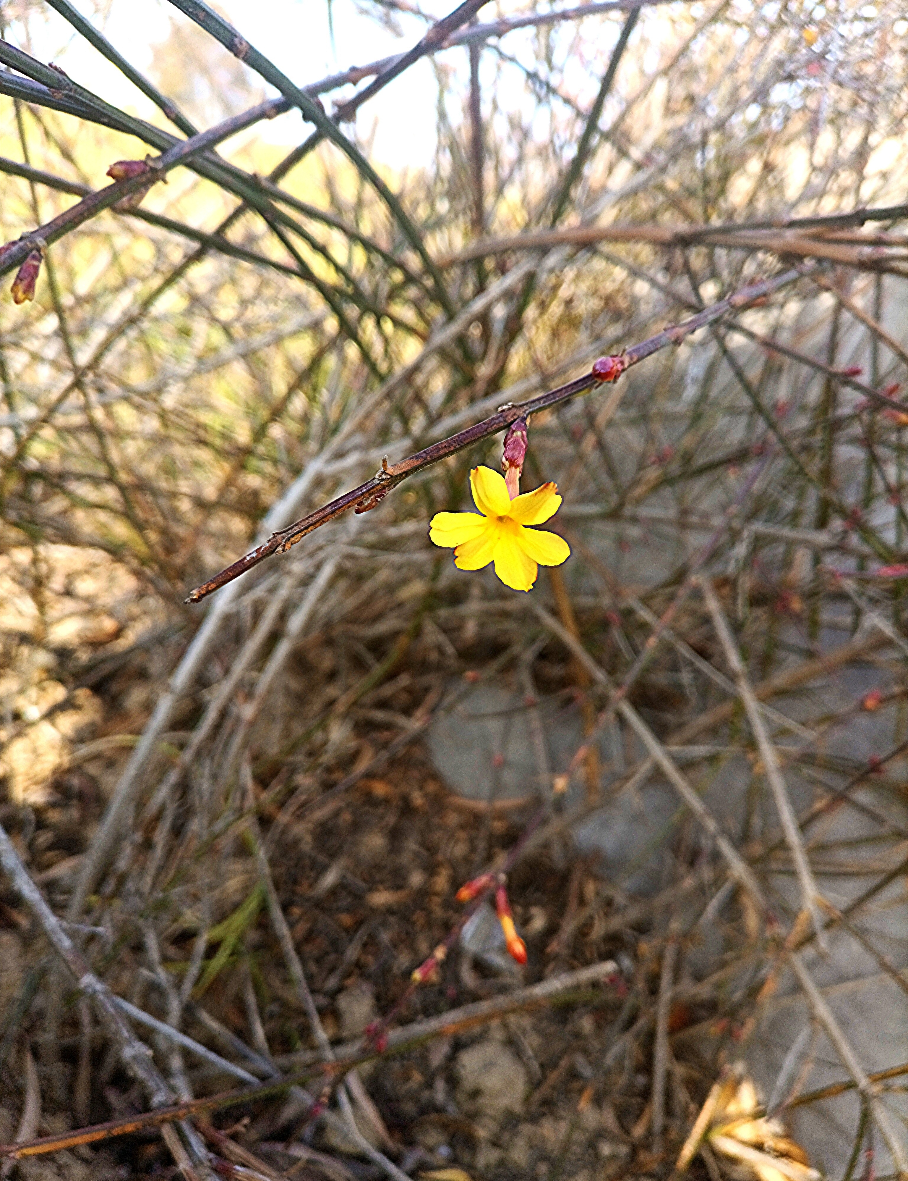 2月3日,是立春時(shí)節(jié)。接連幾日,我市天氣晴朗,氣溫漸暖,周口公園的迎春花枝條已經(jīng)掛滿了花蕾,偶有幾朵“性急”的花兒已經(jīng)綻放,迫不及待地迎接春天的到來(lái),嫩黃的花瓣在陽(yáng)光的照射下,閃耀出金子般的光芒,令人見(jiàn)之心喜。