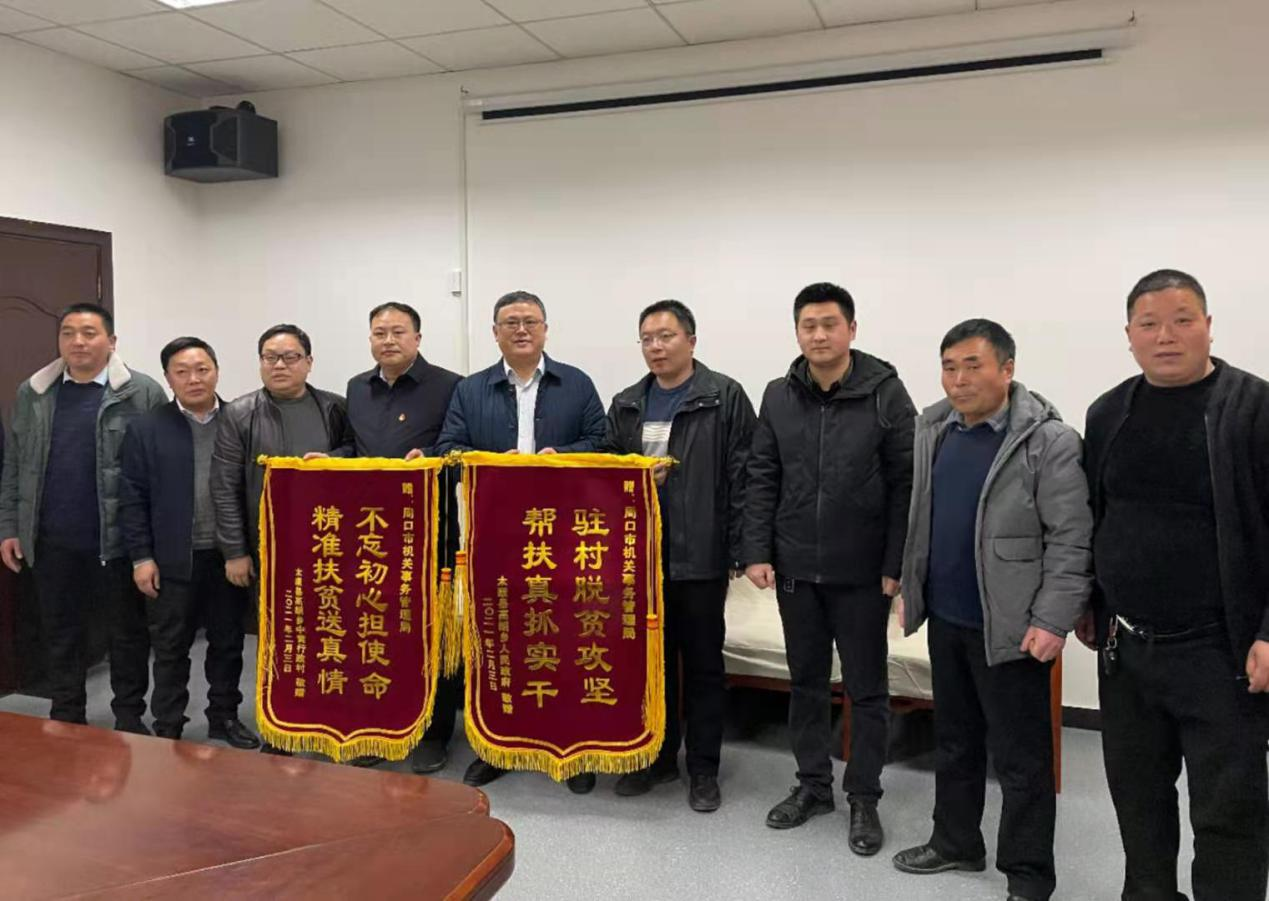本報(bào)訊(記者 竇娜)2月4日,市機(jī)關(guān)事務(wù)管理局迎來(lái)了一批特殊的客人,該局對(duì)口幫扶村——太康縣高朗鄉(xiāng)中黃村黨支部書(shū)記黃東體和群眾代表,送來(lái)了兩面寫(xiě)有“不忘初心擔(dān)使命,精準(zhǔn)扶貧送真情”和“駐村脫貧攻堅(jiān),幫扶真抓實(shí)干”的錦旗,感謝市機(jī)關(guān)事務(wù)管理局在幫扶工作中對(duì)該村的大力支持和真情關(guān)懷。