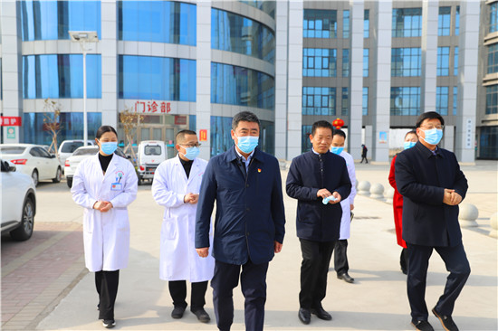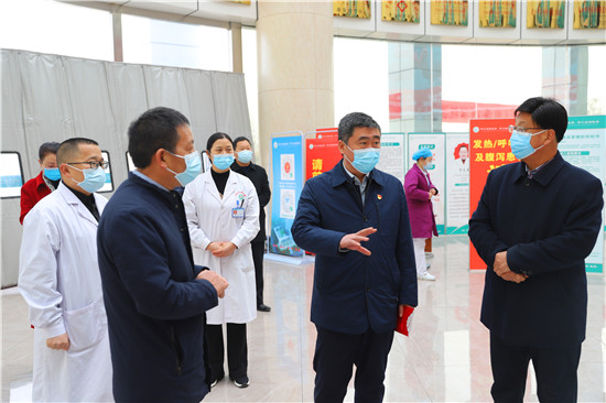 聽取匯報后,孫鵬前往發(fā)熱門診實地查看了解疫情防控工作的各項措施,就當前疫情防控重點與一線人員進行深入交流。新冠疫情暴發(fā)以來,港區(qū)醫(yī)院主動承擔(dān)公共衛(wèi)生職責(zé),協(xié)助港區(qū)黨委、管委會為港區(qū)群眾筑起了一道堅固的健康安全防線。武漢疫情暴發(fā)期間,周口港區(qū)醫(yī)院派出一支由8人組成的援鄂醫(yī)療隊前往武漢,在武漢商職醫(yī)院收治新冠肺炎患者117人。孫鵬對港區(qū)醫(yī)院在新冠疫情防控工作中展現(xiàn)出的擔(dān)當、作為進行表揚,對8位援鄂醫(yī)療隊員冒著生命危險,無私奉獻、勇于擔(dān)當?shù)木礃I(yè)精神表示贊賞。