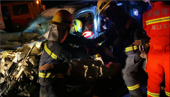 2月21日19時(shí)許,大廣高速周口段2064KM附近發(fā)生一起交通事故,大貨車沖破護(hù)欄與對向車道內(nèi)的兩輛私家車發(fā)生碰撞,司機(jī)和一名5歲女童被困車中。接到報(bào)警后,民警、消防、醫(yī)護(hù)人員迅速趕到現(xiàn)場開展救援,20時(shí)39分兩人被救出并接受進(jìn)一步治療。
