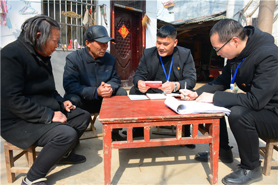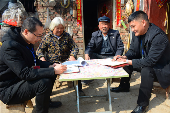 “春節(jié)前夕,有人給您送慰問品嗎?”“有啊,村干部送過了一桶食用油?!薄澳鷤兎蚱迋z個養(yǎng)老金沒問題吧?”“正常領(lǐng)取,沒有問題。”“有哪個部門向您收過錢嗎?”“這不屬于非法占地,沒有人來要錢?!薄澳昵澳鷧⒓恿舜逦瘬Q屆選舉嗎?對干部滿意不?”“參加了,俺對新任干部沒有意見”......不知不覺臨近中午,邵國闖等微笑告辭。