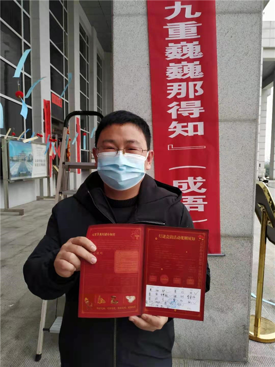 下午首開的一條一等獎燈謎是“九重巍巍那得知(打一成語)”,大家競猜中,安先生帶著家人搶先猜中謎底,高喊為“天子門生”。因謎意難度大,羅營東現(xiàn)場釋難,解釋謎面,他說“九重巍巍"指的是“天宮的意思,這里指皇宮門庭威嚴(yán),乃禁地之所,不可逾越”,“那得知”是“生”的意思,所以謎底為“天子門生”。大家頓足不輟,自悔沒有想到位。在第三條一等獎謎語“甲子(打一個中央電視臺節(jié)目)”揭開,“第一時間”,竟有四人同時舉手猜中,誰是最終的勝者,評判人員讓他們現(xiàn)場各自陳述謎面,以準(zhǔn)確程度定輸贏,羅營東現(xiàn)場解說‘“甲子”是我國古老的紀(jì)年文化,甲在天干紀(jì)年法中排第一位,子在地支紀(jì)年法中也是排第一位,是中央電視的“第一時間”謎面的謎底。最終,來自華耀城辦事處朱莊村的殷有軍解說的謎底與專家的相符成為勝者。