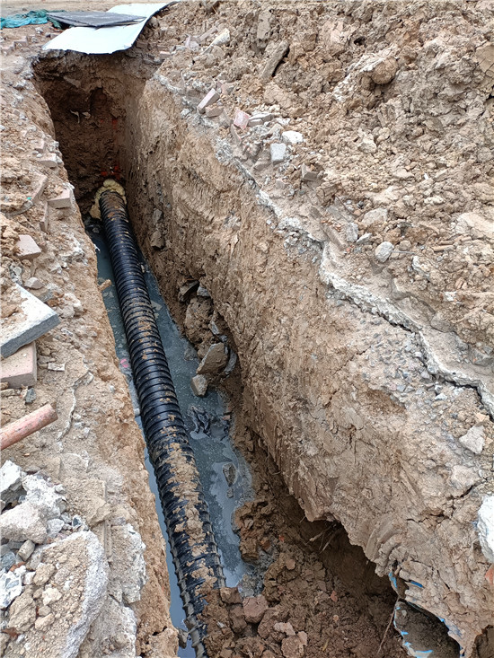 居住在維也納小區(qū)的幾位居民分析說,維也納大門前邊的污水有可能是對面施工堵塞下水道后造成污水溢出造成的。記者又來到維也納小區(qū)對面的馨蓮茗苑小區(qū)門前,那里路面沒有積水,正在進行的市政工程施工工地也沒有看到有大量污水流淌,在馨蓮茗苑大門東邊不遠處有一條挖開的管道溝槽,溝槽的底部有少量污水。剛下班的一名工人師傅說,現(xiàn)在他們正在修建新的下水道,管道建好還得一段時間,舊的排水管道還在使用,至于路南邊的污水與正在施工的工程有沒有聯(lián)系,他們也說不清楚。