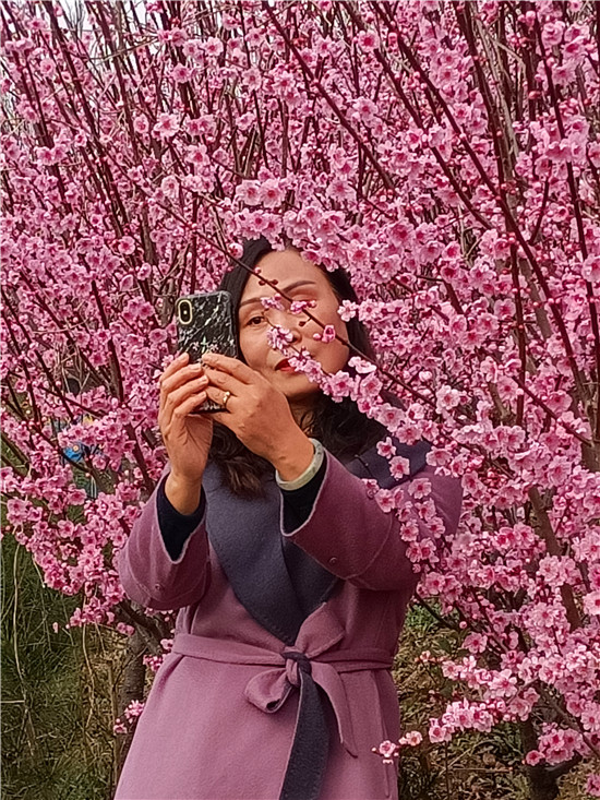 “哇!這些梅花好美呀!”“特別香!”當(dāng)日下午,接受梅樹捐贈儀式的幾名老師和學(xué)生代表剛走進(jìn)梅園,就被園里各式各樣的梅樹所吸引,迫不及待的觀賞拍照。在幾株骨紅梅前,李萌向老師講解了不同品種梅樹的管理知識以及生長習(xí)性和花期。