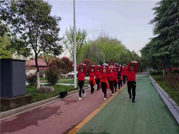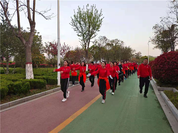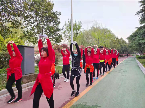 “一!二!三!四!”4月4日清晨,周口公園內(nèi)一支健步走愛好者身著紅色衛(wèi)衣,在潦亮的口號聲中,邁著嬌健的步伐,在鮮花綠葉中行進,撒下一路青春的氣息。②7