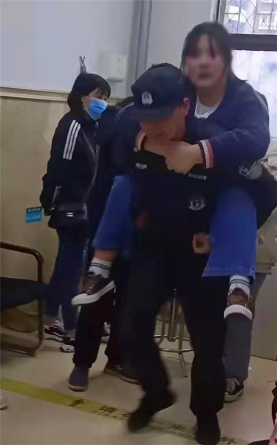 當(dāng)日17時許,在項城市東大街路口發(fā)生一起交通事故,一輛三輪車將一名女孩撞倒在地,女孩腿部受傷呻吟不止。因為沒有家人陪伴,巡邏至此的項城市公安局特巡警大隊隊員任輝輝看到后,立即將受傷女孩背起緊急送往最近的醫(yī)院進行救治。在女孩得到救治生命體征正常后,特警向女孩詢問其家人聯(lián)系方式,不久后其父母趕到醫(yī)院陪護。