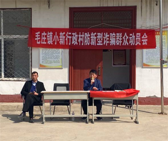 “父老鄉(xiāng)親們,通知退款、虛假中獎(jiǎng)、匯錢(qián)救急、假冒熟人、高薪招聘、刷單返利,這些都是詐騙分子常用的套路。咱們?nèi)绾畏婪赌兀肯旅嫖抑v講‘九個(gè)凡是’和‘五個(gè)一律’……”毛莊鎮(zhèn)宣傳委員、副鎮(zhèn)長(zhǎng)馬巖拿著麥克風(fēng)向村民耐心講解防詐騙知識(shí)。