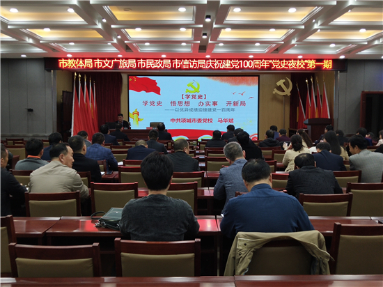 4月13日晚7:00至8:30,項(xiàng)城市教育體育局黨史夜校學(xué)習(xí)班第一期在該局會(huì)議室正式開(kāi)班。來(lái)自項(xiàng)城市教體局、文廣新局、民政局、信訪局的近200名黨員參加了此次培訓(xùn)。