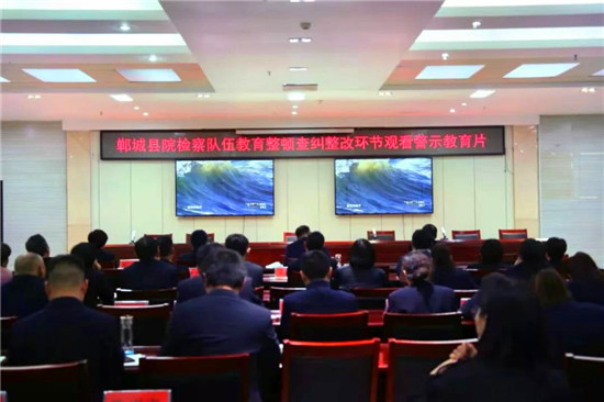 為進(jìn)一步推進(jìn)檢察隊(duì)伍教育整頓工作,做好隊(duì)伍教育整頓查糾整改階段思想發(fā)動(dòng)工作,增強(qiáng)干警的廉潔自律意識(shí),筑牢拒腐防變的思想防線,4月13日晚上,鄲城縣人民檢察院組織全體干警觀看警示教育片《“保護(hù)傘”自身難保,“坐地虎”坐進(jìn)監(jiān)牢》。
