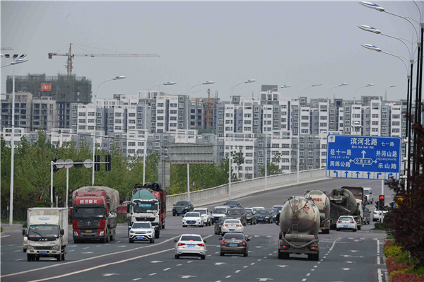 武盛大道南段沙潁河大橋邊高樓林立、車水馬龍充滿大城市氣息