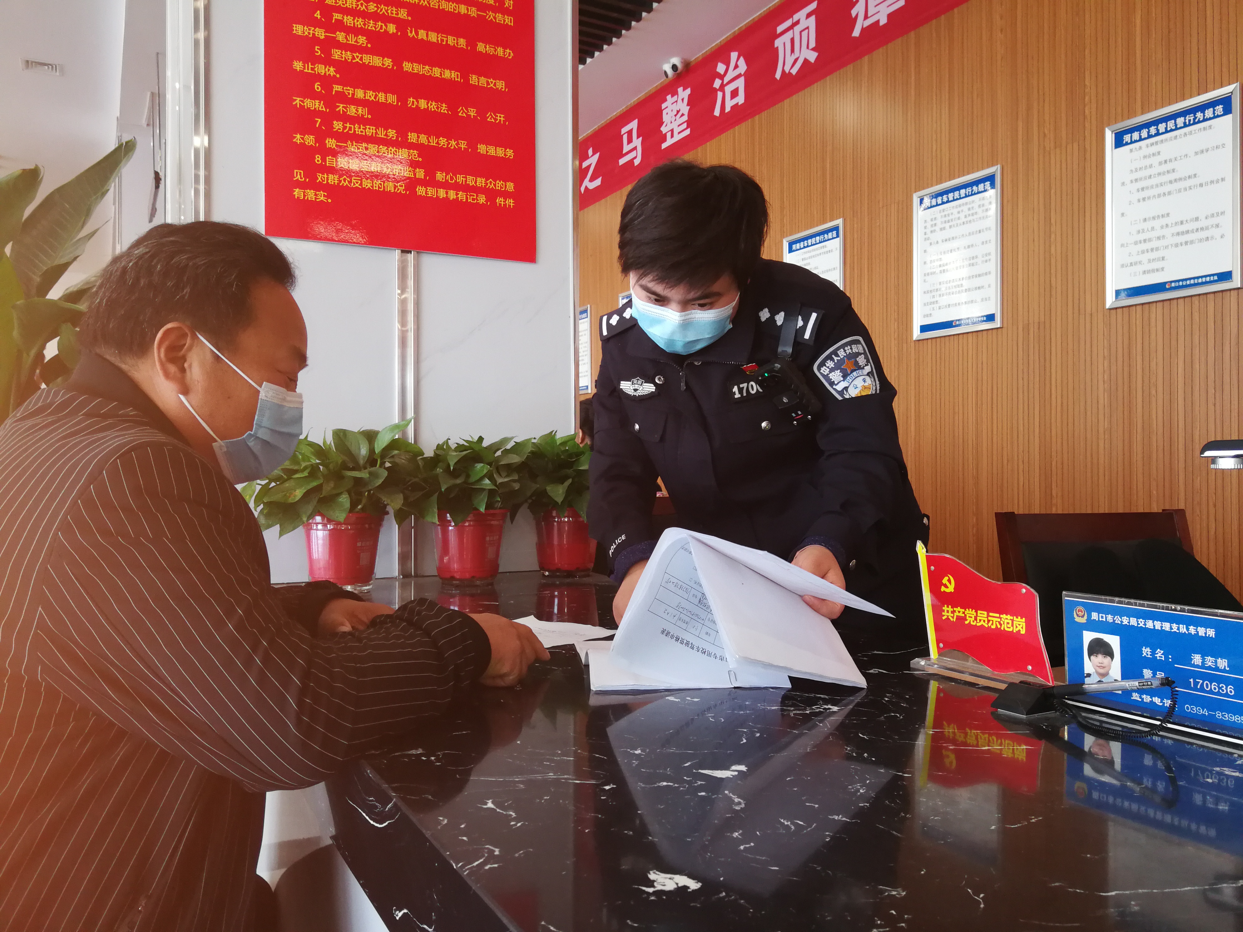三是設(shè)置黨員示范崗,發(fā)揮引領(lǐng)作用。車管所在各個業(yè)務(wù)大廳增設(shè)了“黨員示范崗”,充分發(fā)揮優(yōu)秀黨員的示范、帶動作用,引領(lǐng)全體工作人員牢記服務(wù)宗旨,提升服務(wù)水平,樹立良好形象。