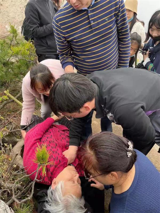 大河網訊 5月3日13點35分左右,周口市兒童醫(yī)院醫(yī)生趙一品在游覽洛陽白云山景區(qū)的途中,遇到一位突發(fā)疾病暈倒的老太太。聽到家屬呼救,趙一品迅速來到暈倒的老太太身邊,協(xié)助家屬清理了老太太口中的食物殘渣,讓病人平躺等待救援。