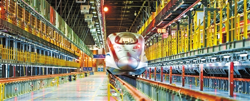 鄭州南動(dòng)車所對(duì)標(biāo)準(zhǔn)組動(dòng)車進(jìn)行檢修。近年來,高鐵新線的陸續(xù)開通,為鄭州逐步建設(shè)成國際性綜合交通樞紐提供了強(qiáng)勁動(dòng)力。 王 錚攝(中經(jīng)視覺)
