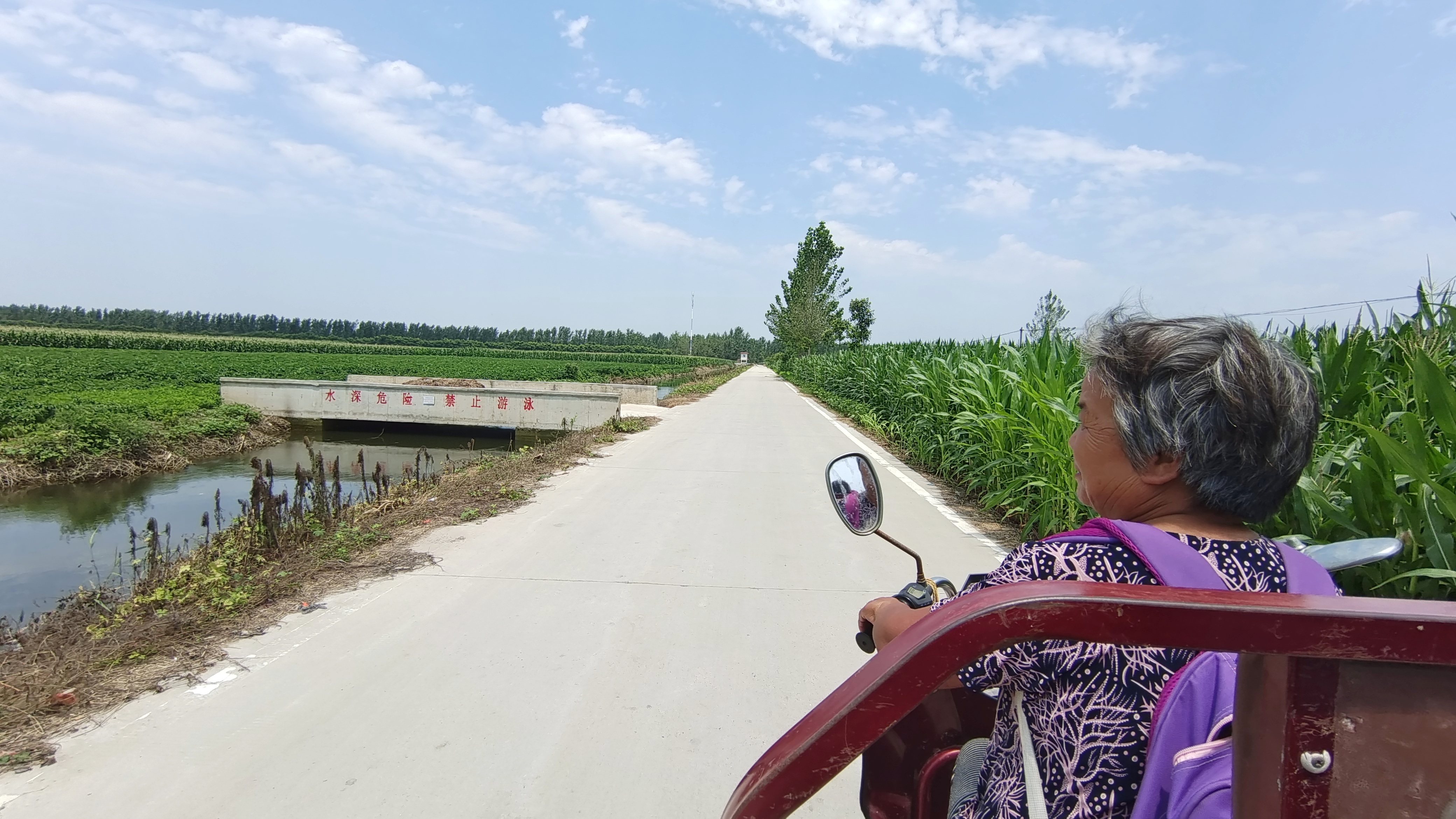 駛出不到幾百米,張梅碰到鄰居王妞的電動(dòng)三輪車(chē)沒(méi)電了,這可讓王妞急出一把汗。她們一商量,就在車(chē)上找了一段舊條幅,由張梅的機(jī)動(dòng)三輪車(chē)牽著王妞的電動(dòng)三輪車(chē)?yán)^續(xù)趕路。