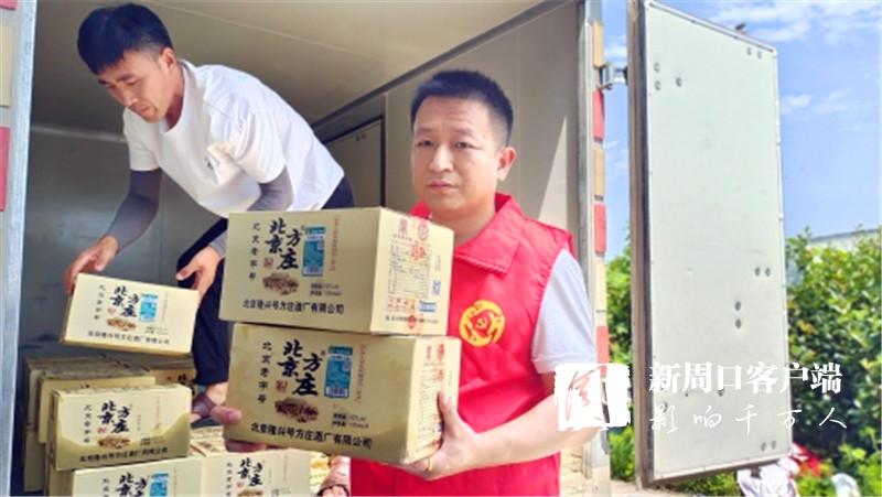 7月30日11時(shí)30分,在西華縣新的社會(huì)階層人士聯(lián)誼會(huì)牽頭下,北京方莊酒周口總代理負(fù)責(zé)人彭建立和員工一起載著價(jià)值6多萬元的酒精、蚊香等物品相繼來到西華縣黃橋鄉(xiāng)、遲營鄉(xiāng)、田口鄉(xiāng)等多個(gè)地方,親自將群眾最亟需的消毒、驅(qū)蟲用品送到他們手中。