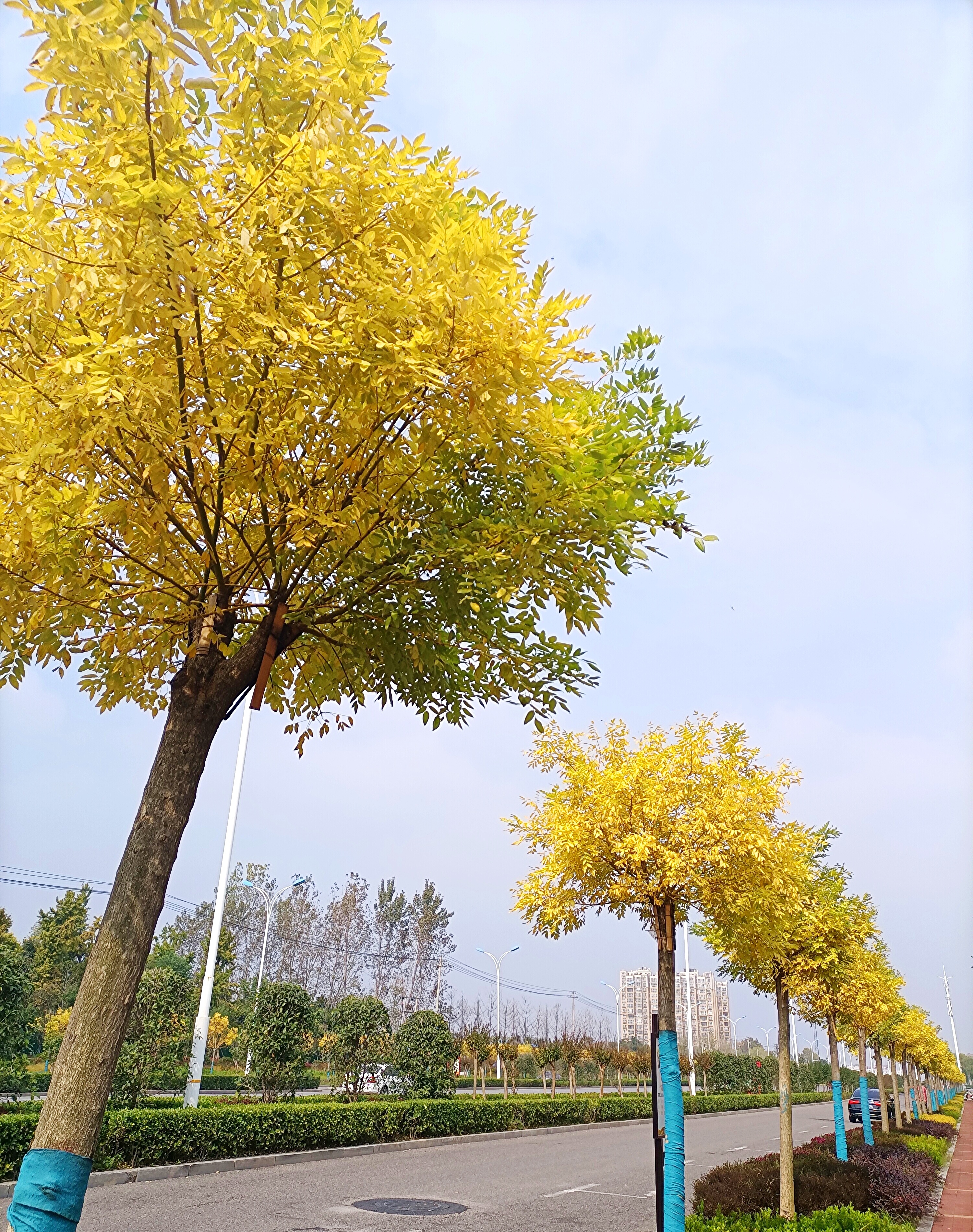 天氣漸涼,綠葉漸黃。近日,我市中心城區(qū)各種樹(shù)木漸漸披上了金黃色的“秋日盛裝”,比如道路兩旁的金絲槐樹(shù)、周口公園的銀杏樹(shù)等。漸漸變黃的葉子呈現(xiàn)出一種別樣的美感。