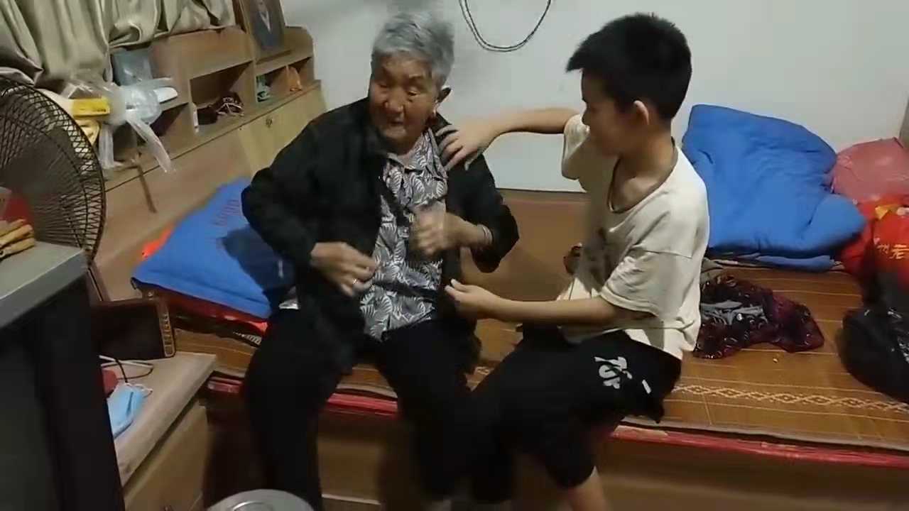 孫子幫奶奶穿衣服