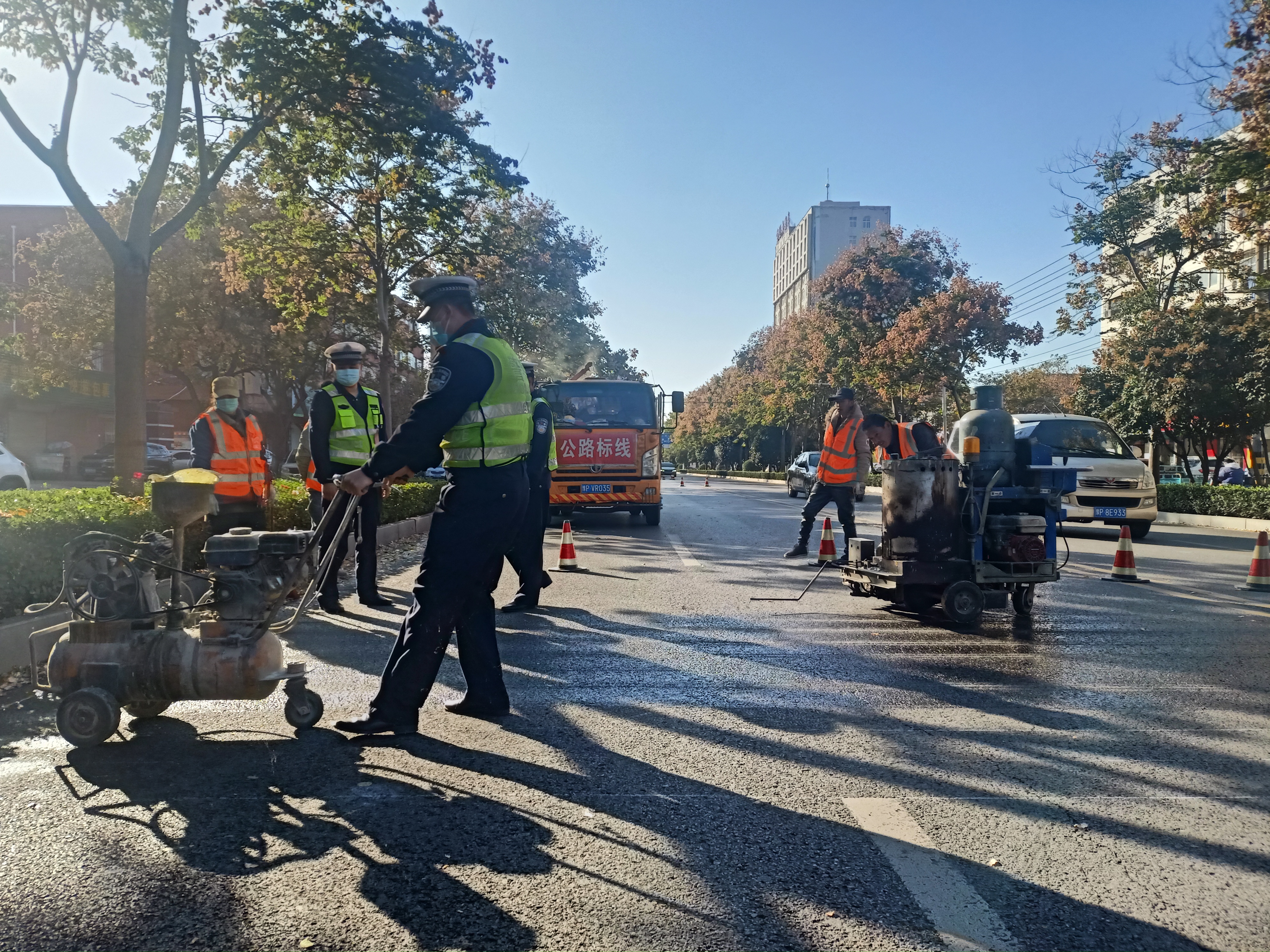 當(dāng)日下午,記者在黃河路看到,施工人員正在熟練地操作標(biāo)線機(jī),認(rèn)真細(xì)致地施劃減速震蕩標(biāo)線。市公安局交通管理支隊(duì)設(shè)施維護(hù)中心(以下簡(jiǎn)稱設(shè)施維護(hù)中心)工作人員黃勇說:“在創(chuàng)文期間,設(shè)施維護(hù)中心加大對(duì)道路護(hù)欄的清洗力度,完善交通信號(hào)燈的維護(hù),清除學(xué)校門口不合理的停車位,修剪遮擋交通設(shè)施的樹枝,排除路口的交通隱患。”
