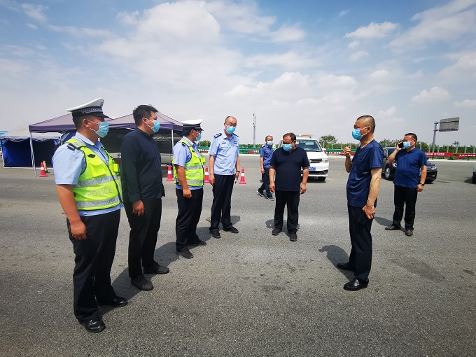 岳備戰(zhàn)一行先后到譚莊高速路口執(zhí)勤卡點、商南高速路口執(zhí)勤點看望慰問值班民輔警及防疫工作人員,并送上慰問品。在卡點,岳備戰(zhàn)詳細檢查了各項防疫工作落實情況,為在一線的防疫人員送去節(jié)日祝福及慰問品,感謝他們用實際行動詮釋擔(dān)當精神、奉獻精神,對大家頂著烈日堅守在防疫一線,為廣大百姓的生命安全保駕護航。同時他強調(diào)大家要時刻保持臨戰(zhàn)狀態(tài),以高度的責(zé)任感,堅定的信心和有力的舉措,站好崗、履好職,扎實做好疫情防控各項工作,全力守護百姓生命健康安全。