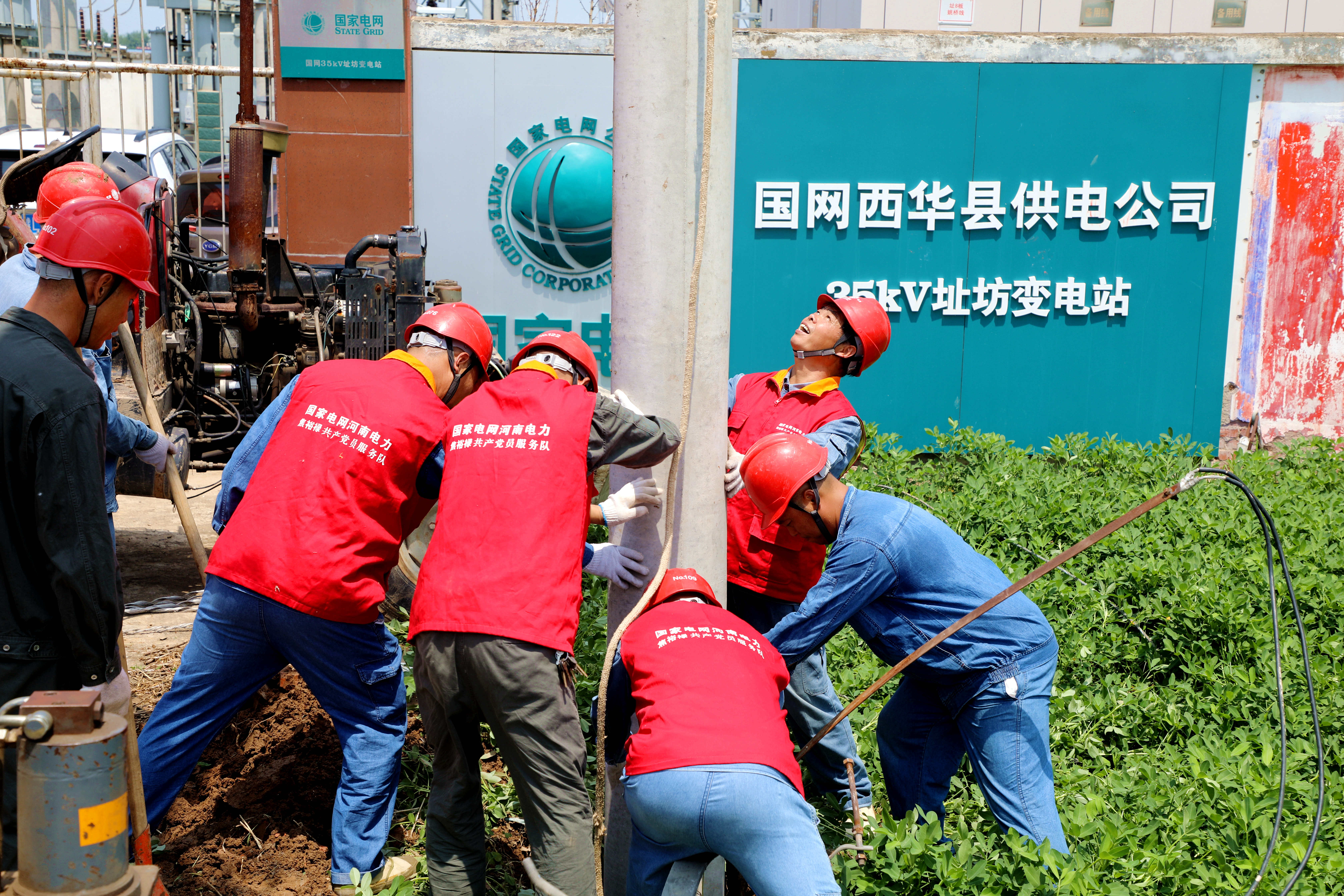 在35千伏址坊變電站10千伏灣張線出線倒桿緊急搶修現(xiàn)場(chǎng),焦裕祿共產(chǎn)黨員服務(wù)隊(duì)沖在最前線,戰(zhàn)高溫、斗酷暑,將原電桿位置遷移,在安全地點(diǎn)重新立桿接線,高效完成牽引、挖坑、立桿、填土、鞏固、緊線等搶修工序。經(jīng)過(guò)連續(xù)奮戰(zhàn),7月26日20時(shí)06分因?yàn)?zāi)停電線路全面恢復(fù)供電。③9