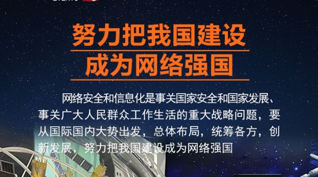 • 2014年2月,中央網(wǎng)絡(luò)安全和信息化領(lǐng)導(dǎo)小組成立,中共中央總書記、國家主席、中央軍委主席習(xí)近平親自擔(dān)任組長。在領(lǐng)導(dǎo)小組第一次會議上,習(xí)近平總書記強(qiáng)調(diào),網(wǎng)絡(luò)安全和信息化是事關(guān)國家安全和國家發(fā)展、事關(guān)廣大人民群眾工作生活的重大戰(zhàn)略問題,要從國際國內(nèi)大勢出發(fā),總體布局,統(tǒng)籌各方,創(chuàng)新發(fā)展,努力把我國建設(shè)成為網(wǎng)絡(luò)強(qiáng)國。