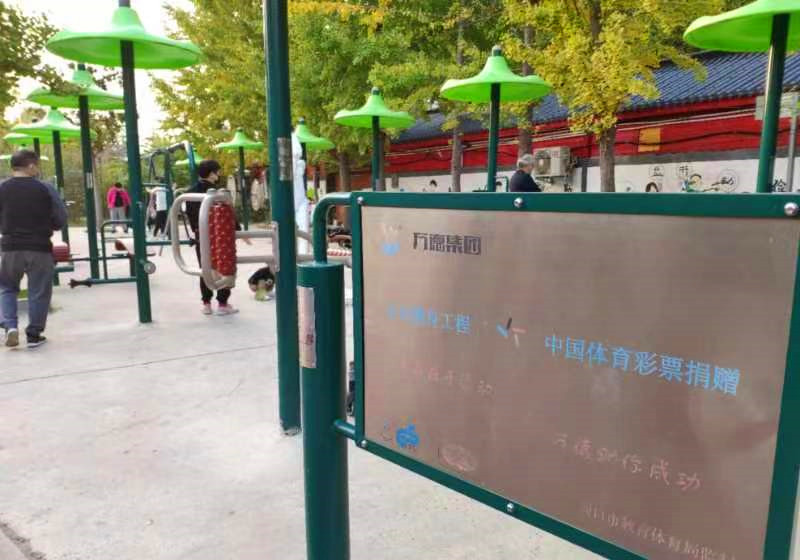 圖為周口市區(qū)廣場(chǎng)上由體彩公益金捐贈(zèng)的體育器材