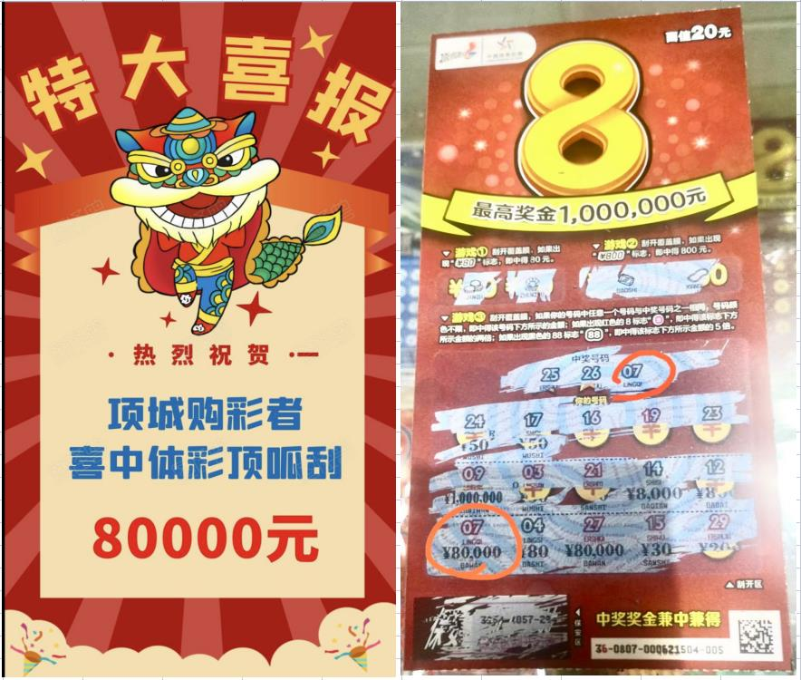 近日,周口項(xiàng)城市購(gòu)彩者張先生(化名)來(lái)到周口體彩分中心辦理了兌獎(jiǎng)手續(xù)。他刮的一張頂呱刮“超值8”即開型彩票中得8萬(wàn)元大獎(jiǎng)。