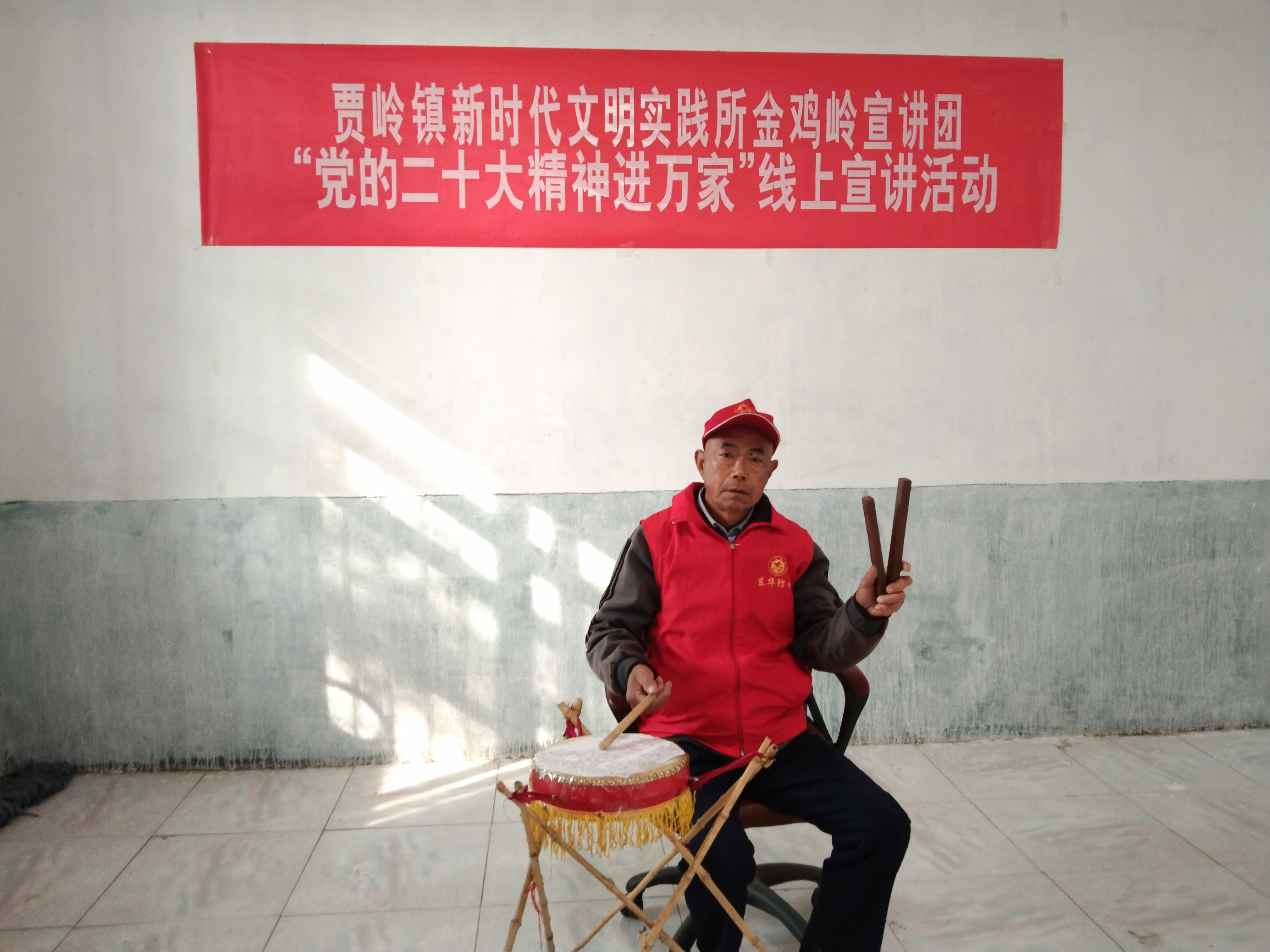 • 近日,項(xiàng)城市賈嶺鎮(zhèn)新時代文明實(shí)踐所金雞嶺宣講團(tuán)志愿者、七旬老人閆汝才閑暇就會坐在一張凳子上,一手敲鼓、一手夾板,配合唱腔、道白,利用非遺“大鼓書”藝術(shù)表演形式,通過抖音平臺在線上宣傳黨的二十大精神。