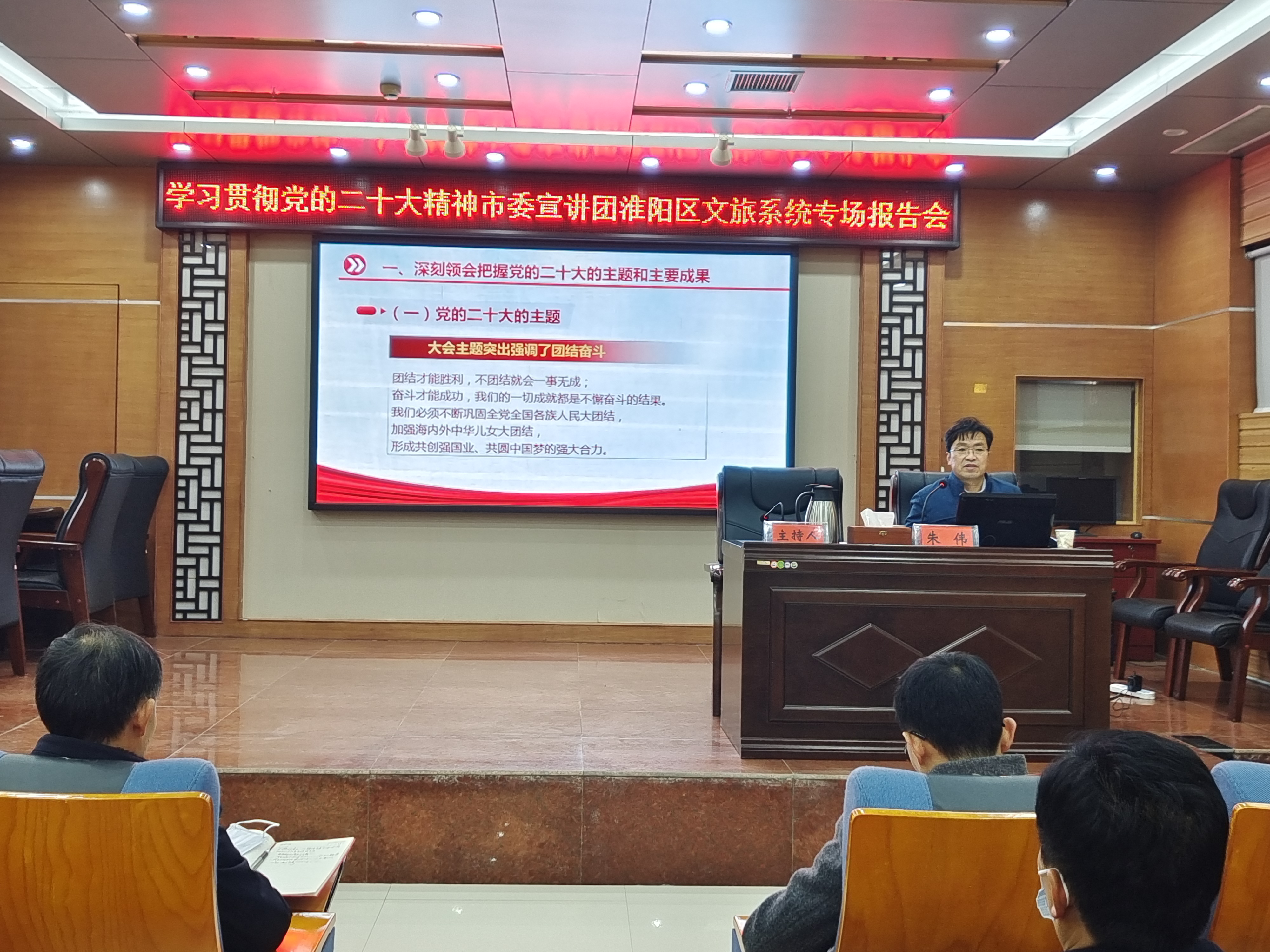 • 11月29日下午,周口市委宣講團(tuán)成員,市文化廣電和旅游局黨組成員、副局長朱偉走進(jìn)太昊陵景區(qū),向淮陽區(qū)廣大文旅干部職工、游客宣講黨的二十大精神。