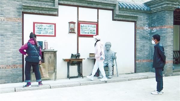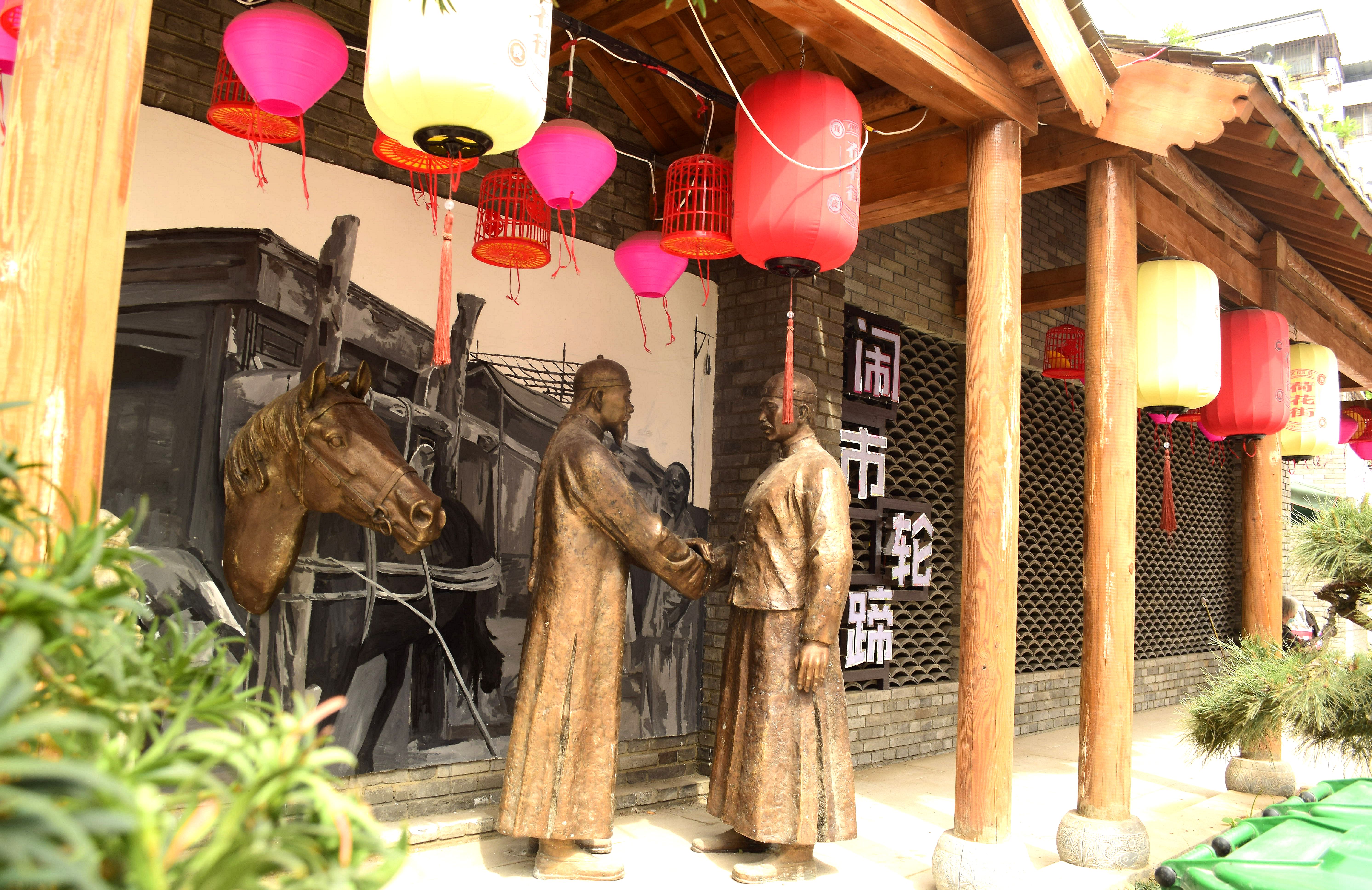 • 5月16日上午,記者在荷花街看到,其沿街仿古式游廊又增添了“鬧市輪蹄”雕塑,向人們?cè)佻F(xiàn)了隱身到歷史深處的古街風(fēng)情。