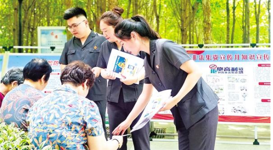 • 6月15日,項(xiàng)城市在北公園舉行以“守住錢袋子·護(hù)好幸福家”為主題的2023年防范非法集資宣傳月活動(dòng),副市長(zhǎng)戶超品走進(jìn)現(xiàn)場(chǎng),與群眾一起了解如何進(jìn)行識(shí)別非法集資常見(jiàn)的一些“套路”。