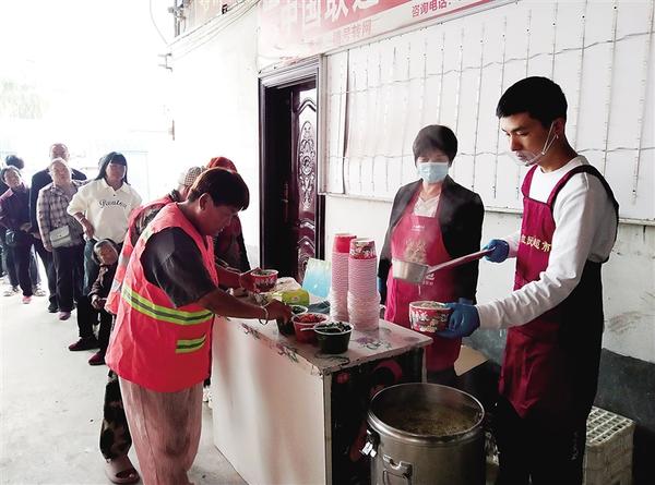 10月10日,重陽節(jié)前夕,清晨第一縷陽光灑向大地,錢廣新已經忙碌起來,在他和廚師的精心準備下,一鍋鍋熱氣騰騰、香氣四溢的綠豆面條端了出來。錢廣新一邊熱情地招呼老人排隊,一邊動手盛飯,微笑掛在嘴角,快樂寫在臉上。