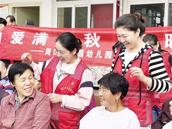 10月10日上午,周口市文昌幼兒園黨支部30余名黨員志愿者來到川匯區(qū)城南街道綜合養(yǎng)老中心,開展“愛滿金秋 情暖重陽”志愿服務活動。志愿者向老人送去慰問品,并表達對老年人的美好祝福。