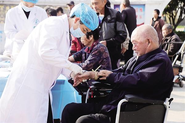 10月11日,西華縣奉母鎮(zhèn)七里倉五個行政村聯合開展“九九重陽節(jié),濃濃敬老情”活動?;顒又校钅告?zhèn)衛(wèi)生院為當地65歲以上老人提供義診服務。