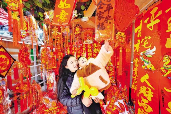 • 新春將至,年味漸濃。2月12日,在掛滿福字與春聯(lián)的商鋪里,市民懷抱著孩子認(rèn)真挑選,指尖拂過(guò)紅彤彤的春聯(lián)紙,目光里滿是對(duì)新年的期許。